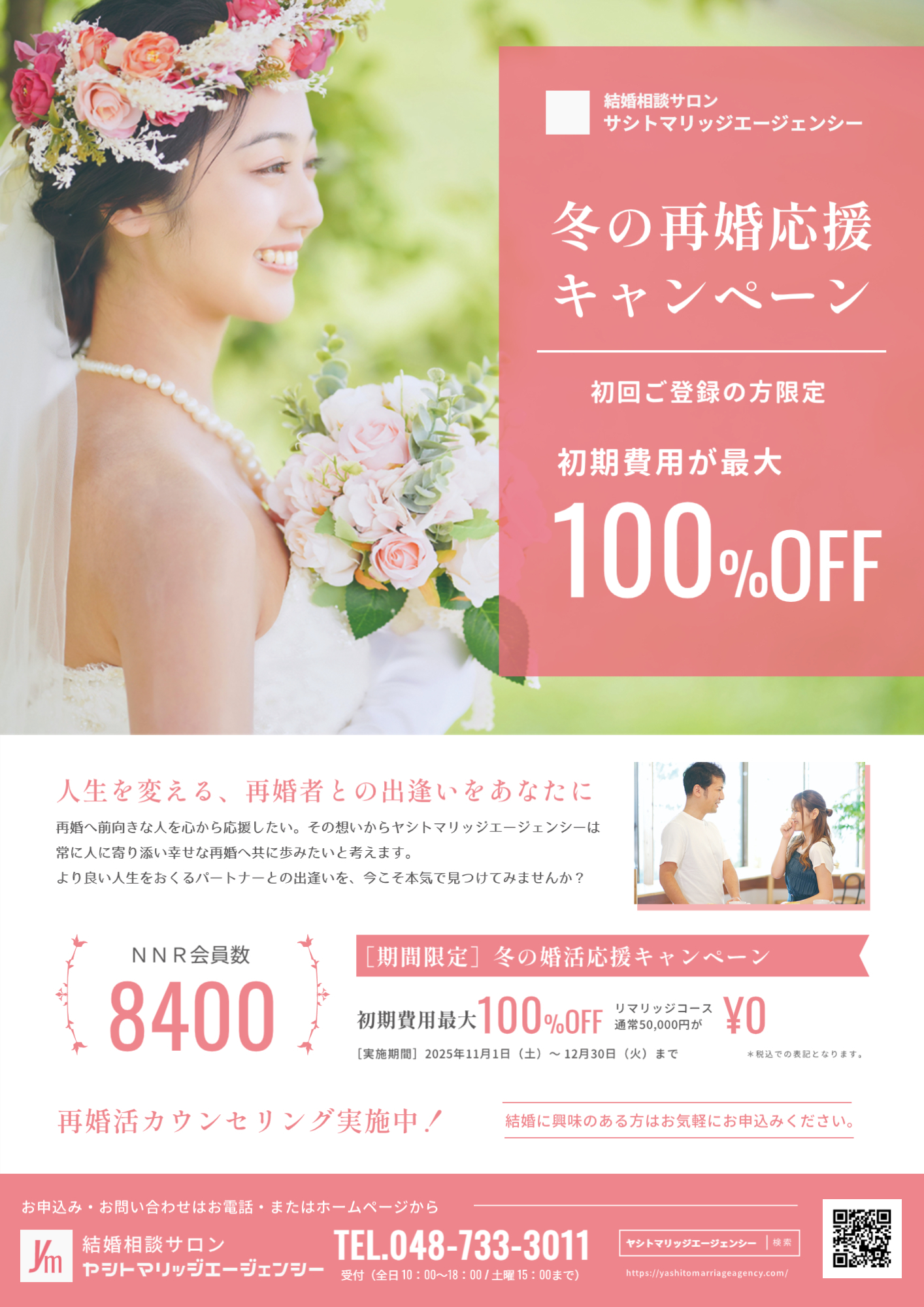 | 相談所名 | ヤシトマリッジエージェンシー (日本仲人連盟NNR正規加盟店) |